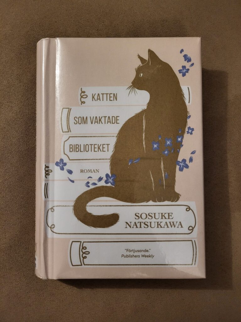Jag har verkligen en förkärlek för japanska romaner med böcker och katter i handlingen, jag vet inte vilket nummer i ordningen den här boken har. Och det roliga är att kollegan som beställer skönlitteratur sa häromdagen att han hade beställt en ny japansk roman till mig med en katt på omslaget, inte om böcker den här gången utan om mat, vilket också passar mig.
