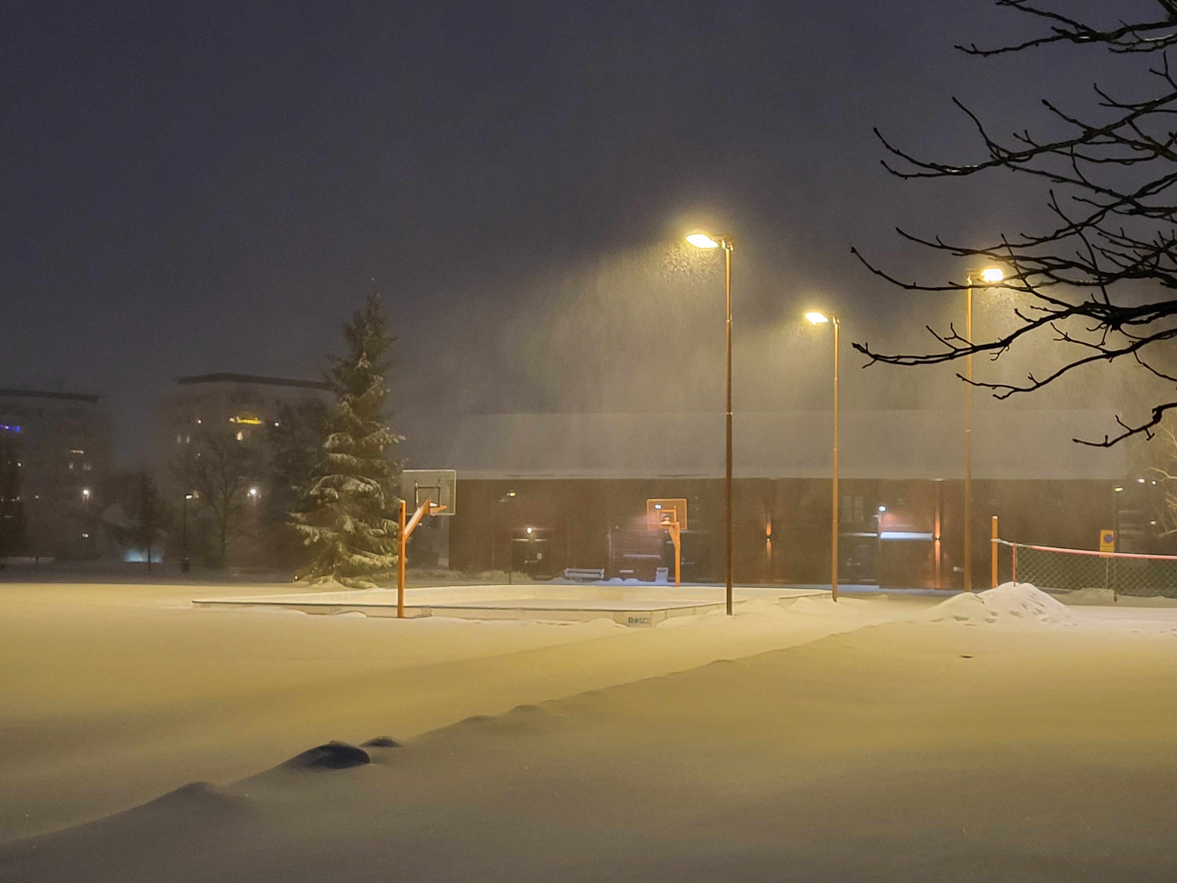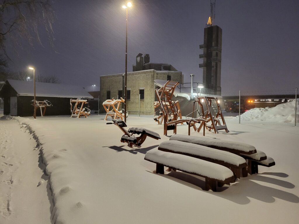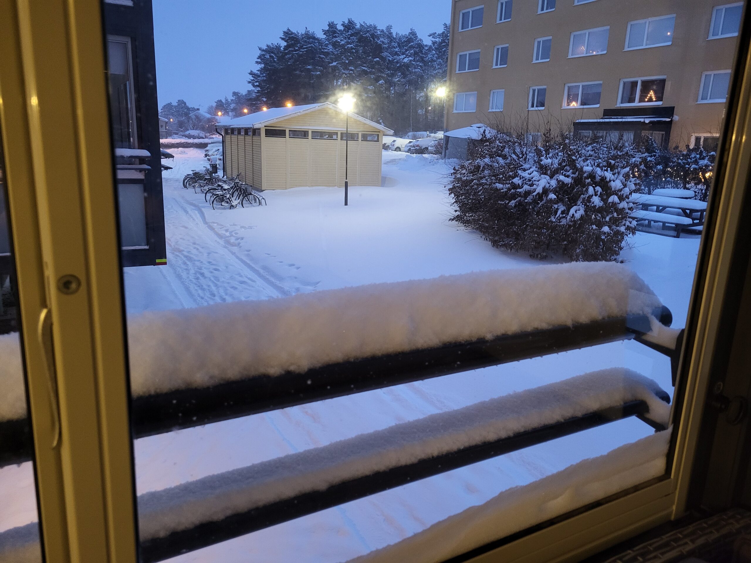 Som vanligt hade kommunen inte skottat trappan vid huvudentrén på jobbet så en kollega fick göra det innan vi öppnade och eftersom det fortsatte att snöa mest hela dagen så var jag ute senare på dagen och tog en omgång till, plus att jag grusade.