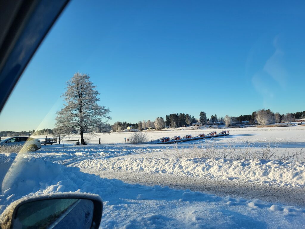 Hemma blev det inte plogat förrän på kvällen eftersom våra parkeringar och vägar mellan husen inte är så högt prioriterade.