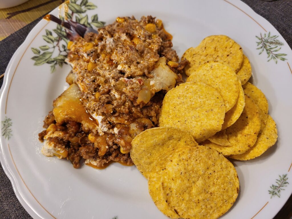 Vi var lite otåliga – eller väldigt hungriga – så osten hann inte smälta klart innan vi käkade, vilket till viss del förklarar den något oaptitliga bilden 😉